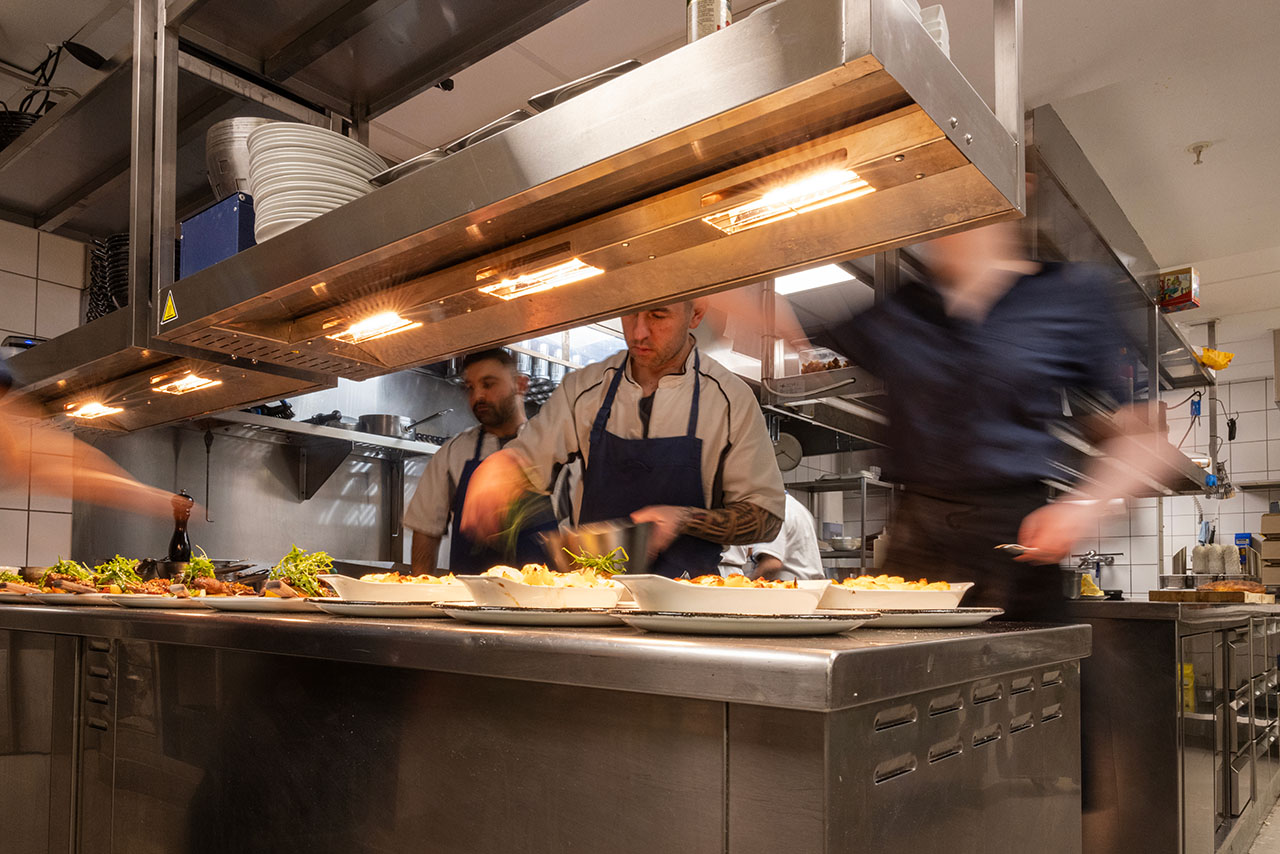 På kjøkkenet står kvalitet i sentrum. Vi lager mat med omtanke – basert på førsteklasses råvarer, gjerne lokale når det lar seg gjøre. Vår ambisjon er enkel: at du skal gå herfra både mett og fornøyd. Et eksempel på det lokale forankringen er osten på pizzaene våre, og vår hjemmelagede italienske is, som begge kommer fra Toddum Gårdsysteri – bare et steinkast fra Namsos sentrum.