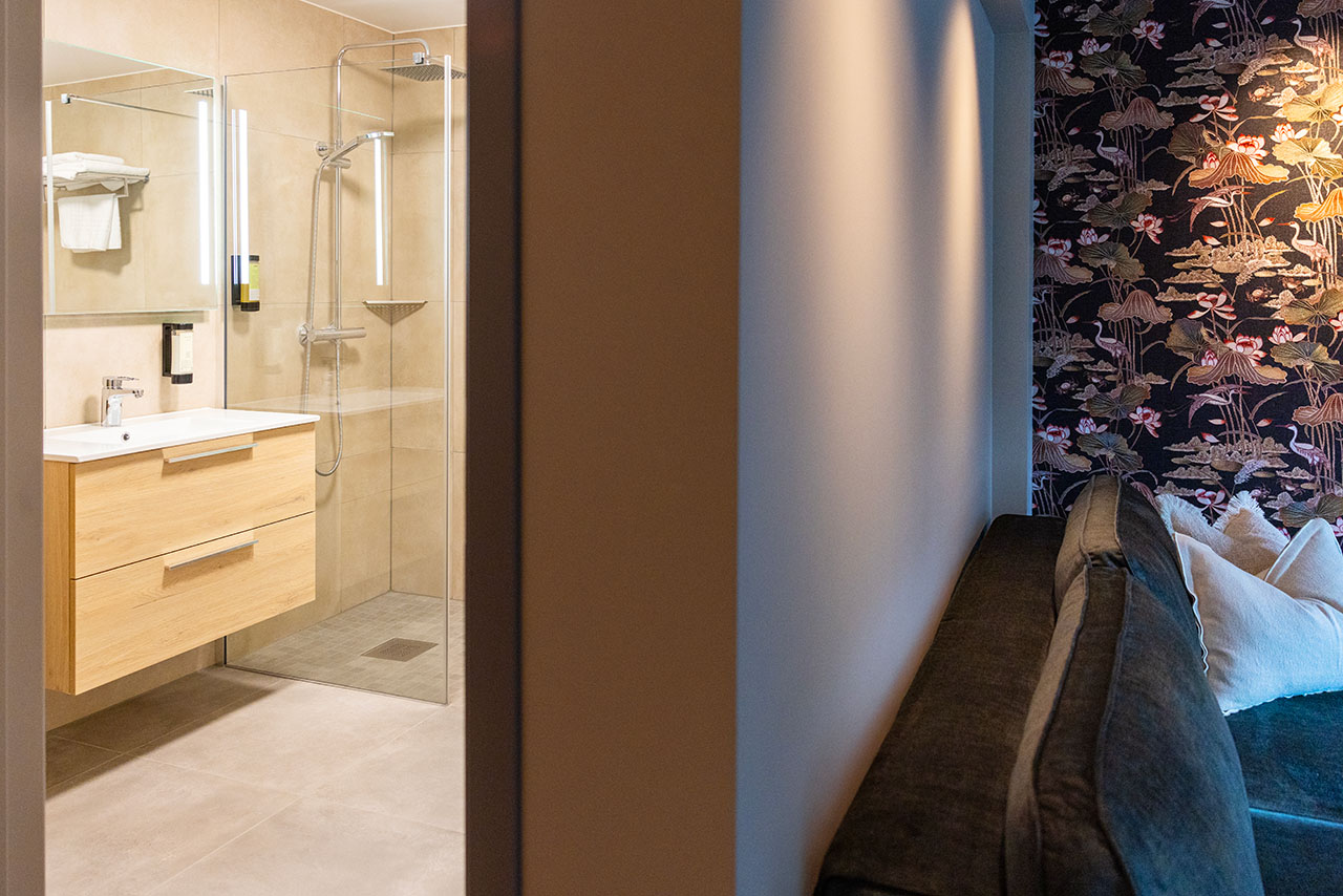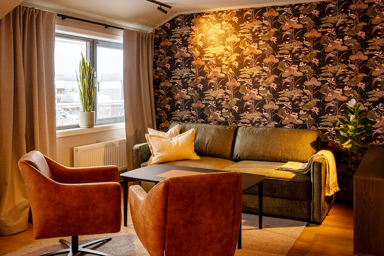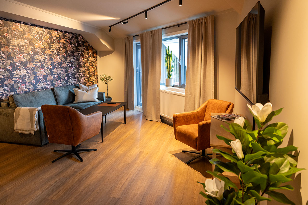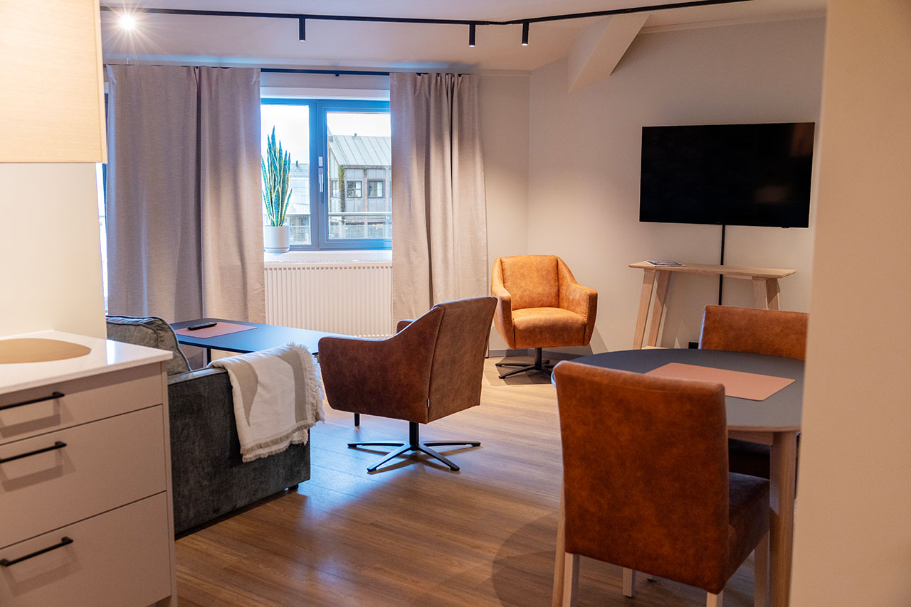 Vårt lille hotell har 11 nyoppussede rom og 3 romslige leiligheter – alle med gjennomført stil, gode senger og en lun atmosfære. Flere av rommene har egen balkong, med utsikt mot bysentrum.